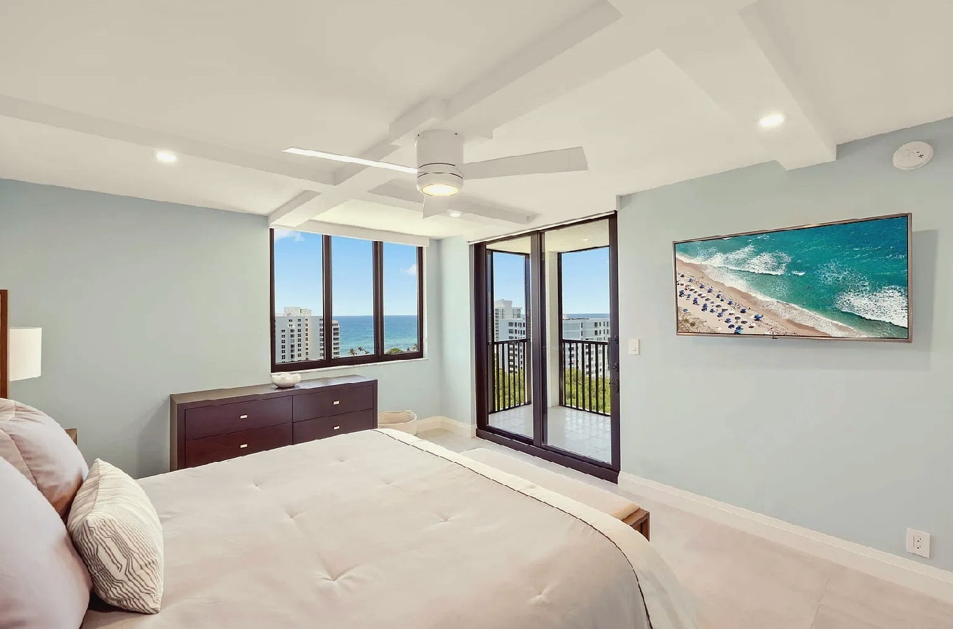 This elegant two-bedroom oceanfront penthouse offers breathtaking panoramic views of the Atlantic Ocean from its spacious private balcony. Featuring bright open-concept living areas, a fully equipped modern kitchen, and stylish coastal décor, it provides the perfect blend of sophistication and comfort. Guests can enjoy direct beach access, a resort-style pool, and state-of-the-art fitness facilities, making it ideal for both relaxation and recreation. Conveniently located near fine dining, boutique shopping, and local attractions, this refined penthouse is the perfect choice for couples or families seeking a serene and luxurious seaside escape.